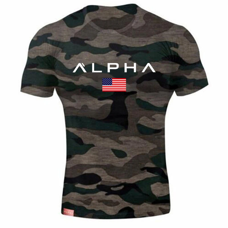 2019 Men Gyms Fitness T-shirt alpha Workout Cotton t shirts Man Round colla Printed Slim Tee Tops F