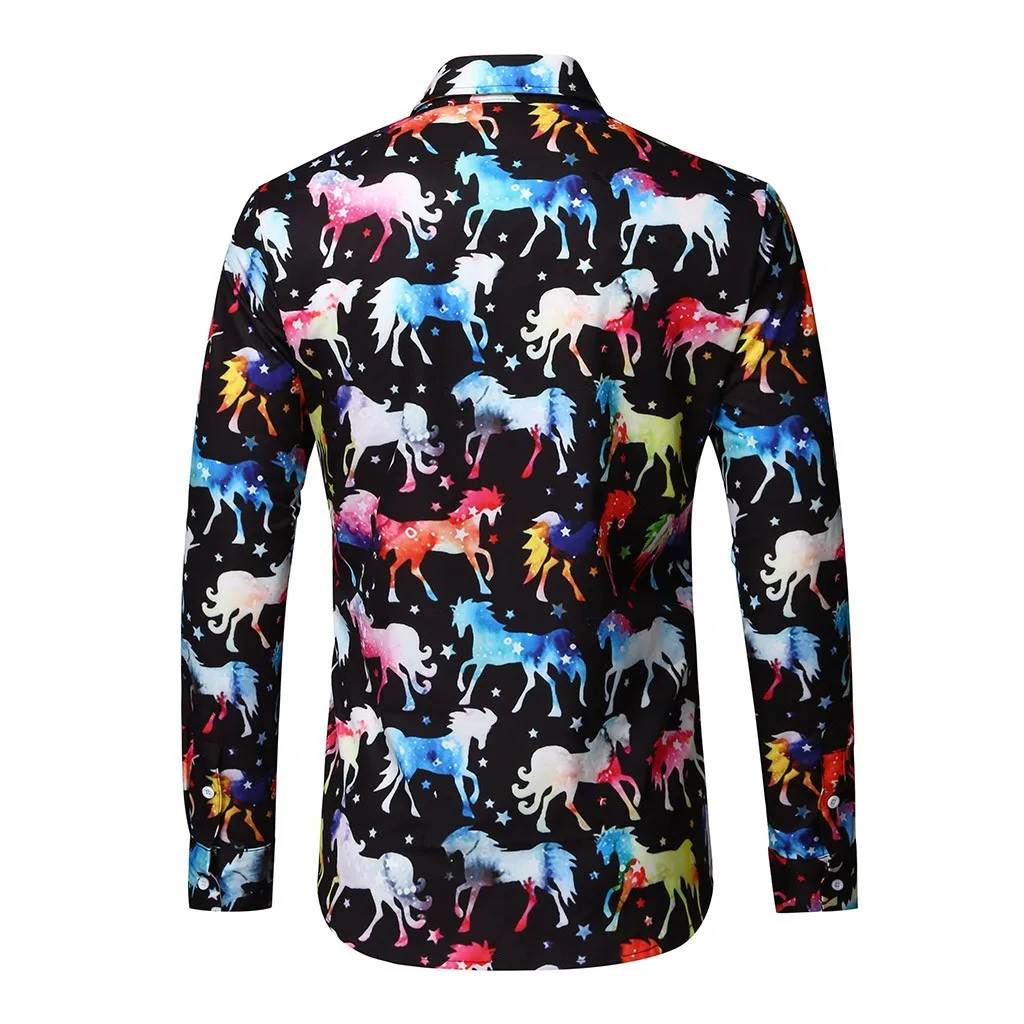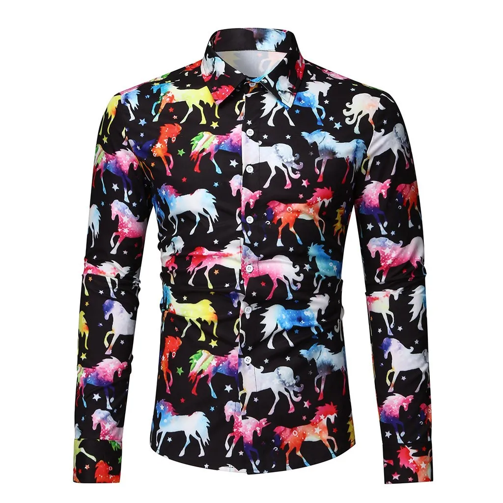 2019 Retro Floral Printed Man Casual Shirts Fashion Classic Men Dress Shirt Breathable Men's Long S